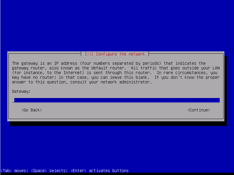 Network değerlerinin girildiği bölüm ile IP bilgisini yazdıktan sonra Continue ile devam ediyoruz.
